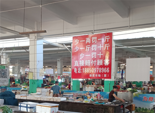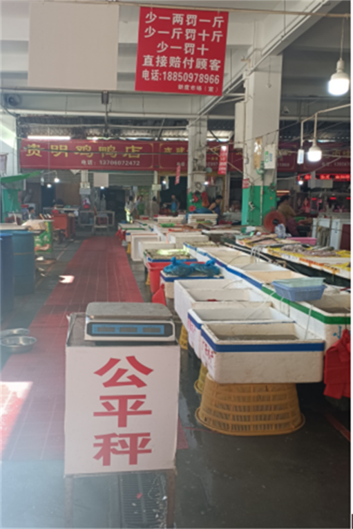 今年以来,莆田市市场监管局深入开展电子计价秤市场秩序综合整治,联合荔城区局,以新度市场为试点,创新建立农贸市场诚信计量“四个有”机制,并在全市予以推广(“四个有”:一有消费提醒牌,提示消费者购买水产品,务必在宰杀前到“公平秤”复秤;提示消费者对所购商品有怀疑,尽量现场处理。二有惩戒警示牌,在市场醒目位置悬挂或张贴含有“少一罚十及维权电话”等内容的警示牌。三有公平秤,重点水产海鲜摊显著位置设置多台公平秤,方便消费者主动复秤和维权监督。四有赔付机制,建立“计量失准先行赔付”机制,发现“短斤少两”,由市场管理方先行赔付消费者)。