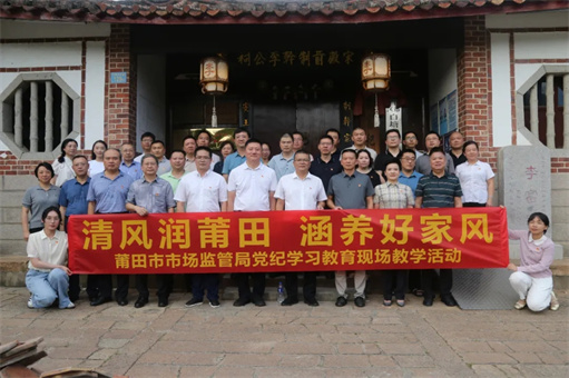 为深入贯彻习近平总书记关于党的纪律建设的重要论述,6月27日上午,莆田市市场监管局党组书记、局长吕正山带领局领导班子成员、局机关党委委员、纪委委员和各党支部书记集体前往白塘镇洋尾村李富家风教育基地开展“清风润莆田 涵养好家风” 党纪学习教育现场教学活动,推动党纪学习教育走深走实。