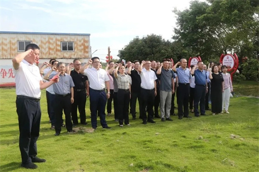 参观开始前,全体党员庄严肃立、举起右拳,以洪亮的声音,激昂的斗志重温入党誓词。
