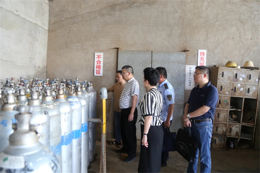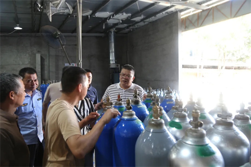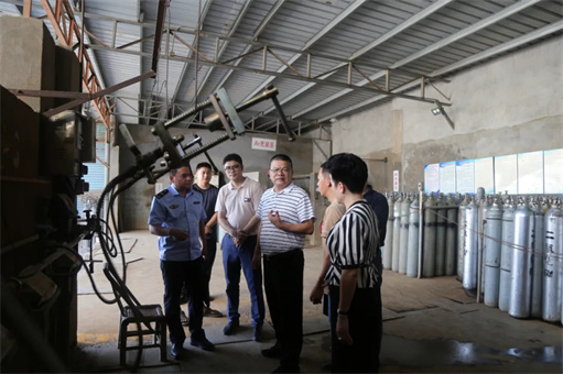 吕正山局长首先来到荔城区黄石制氧厂,现场检查企业特种设备运行管理情况和气瓶充装、检验等工作,查看气瓶质量安全追溯系统使用记录,现场督促整改问题2个,要求企业切实担负起安全生产主体责任,落实特种设备“日管控、周排查、月调度”工作要求,加强内部人员培训,规范气瓶充装流程,及时排查化解安全风险隐患。就抓好市场监管领域安全生产工作,吕正山局长强调,要严格落实“三管三必须”工作要求,深入开展好安全生产及消防安全治本攻坚三年行动,以城镇燃气安全、电梯安全等为重点全面开展特种设备安全隐患排查整治,强化问题闭环管理,依法查处违法行为。