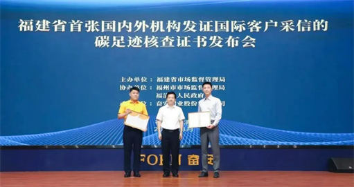 2025年8月19日,在福建省市场监督管理局指导下,福建省首张国内外机构共发证、获国际客户采信的碳足迹核查证书在奋安铝业正式发布,此成果为全省出口型企业提供了可复制的绿色发展范本。