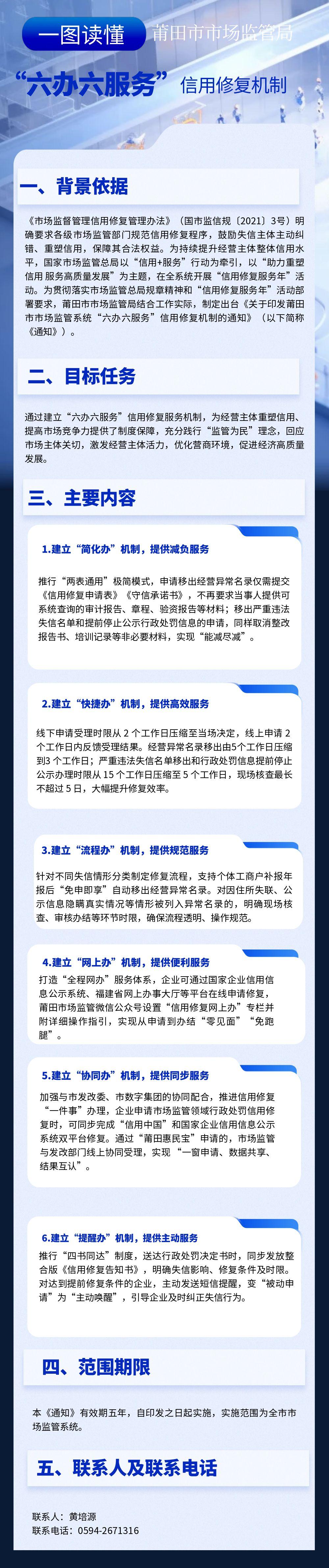 一图读懂|莆田市市场监管系统“六办六服务”信用修复机制的通知
