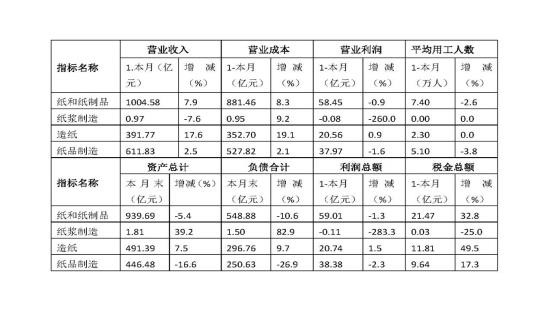 福建省 2021年01-09月份造纸及纸制品工业经济效益概况